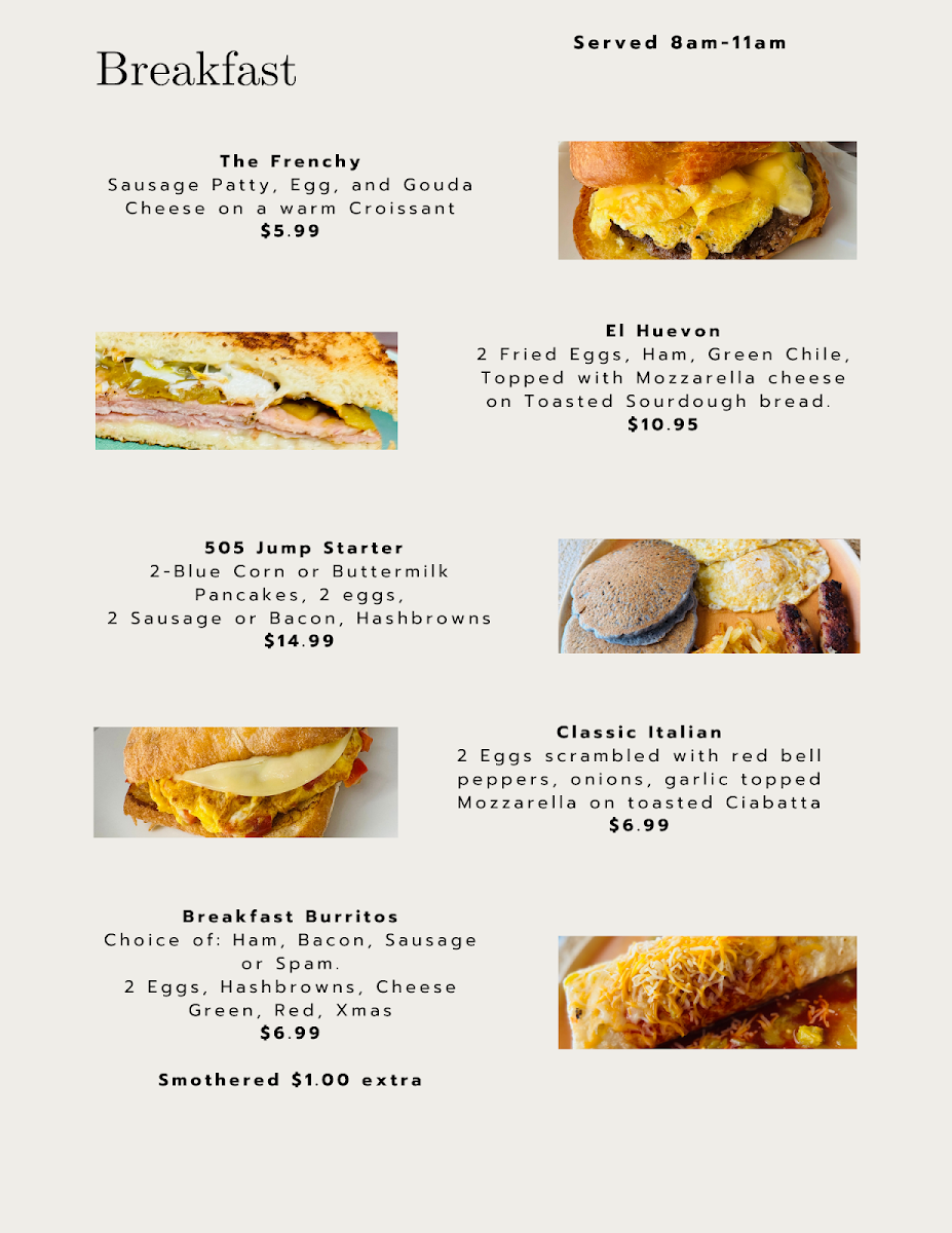 Breakfast at Bella Flora is not to be missed. Signature dishes include the popular Breakfast Burrito, praised for its robust flavor, and The Frenchy, a breakfast classic at just $5.99. Other notable options like the hearty 505 Jump Starter and Classic Italian cater to every palate.